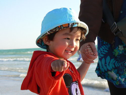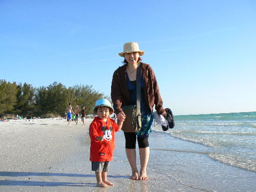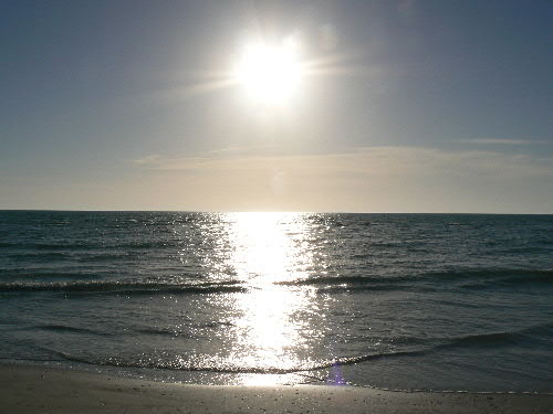 お墓参りの帰りしな、我が第二の故郷(大袈裟だけど)センピーへ立ち寄りました。ここは、お気に入りのフォート・デソトのビーチ。過去に何度もフロリダ州のベストビーチに選ばれたこともあり、素朴でいてステキな所です。果てしなくメキシコ湾に続く紺碧の海、きれいな砂浜、青い空、どれも大好きです。
