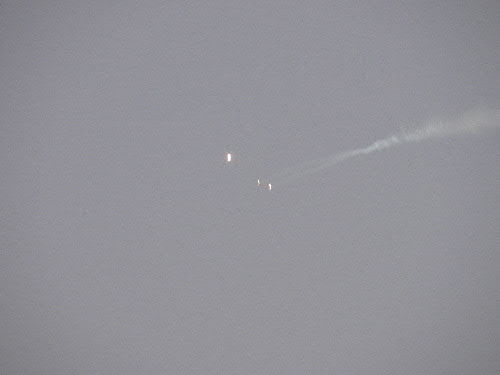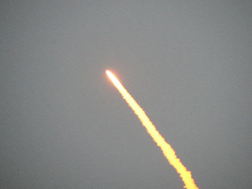 今回は珍しく燃料タンクの切り離しが肉眼で確認できた。垂直に上がるというよりは、途中から地球に沿った軌道になったためかな。この燃料タンクはモロッコ沖の海洋に落ちるとの事。今回、若田さんは3ヶ月にも及び国際宇宙ステーション(ISS)に駐在し、実験、ISSの管理、次のシャトルで運ばれるきぼう実験棟の準備、および設営を担う。すべて順調に行き、3ヶ月後の無事の帰還を祈ります。
