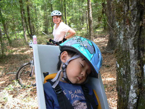確かに5時間ぶっ通しでペダルを漕いでいたのだから、無理しすぎたね。これ以上先へは進めぬと判断したカイチチは、カイママ、カイトを置き去りにして、1人で来た道を引き返した。 そんな私も体力的にも疲労しており、同じ道を何度もぐるぐる回ってしまった。もともと頭がよくないのに、なおさら、思考力低下。あせってはいかんを思い、途中道行く人へ尋ねながら、何とか駐車場までは引き返した。そのとたん、疲れが一気にでたので、まっすぐオーランドへ帰ってきた。 訳は無く、妻と息子を向かえに行ったのでした。 つらかったけど、楽しい思い出になった。 帰りの車で居眠りしてたカイママにはむかついたが。
