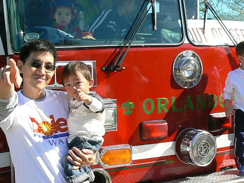 カイトが何度もお世話になったArnold Palmer HospitalにもあるRonald McDonald Houseのチャリティーイベントの一つであるTouch-A-Truckへ行って来ました。 その名の通り、McDonaldがやっている福祉団体で、入院生活をしている子供たちを持つ親に宿舎として使える施設を提供したりしています。 カイトも産まれたての時に5日ほど入院していて、病院の方々からそこに泊まることもできると教えてもらったけど、私たちは通える距離だったし、私たちよりも必要としている両親が沢山いるので、その施設を使うことは無かったけど、やっぱりそういった施設の必要性を身に沁みて感じることができたので、ちょっとした寄付をしてきました。 このイベントでは子供たちが私たちの身の回りで活躍しているトラックを触ったり乗ったりして体験できという、それに募金活動も一気にやってしまうという、すごくいいイベントでした。 カイちゃんは消防車やパトカー、そして、軍の乗り物に乗ってみましたが。。。 ちょっと圧倒されてました。 大きな音のクラクションが鳴ってたり、人が沢山いたりで、ちょっと不安になっちゃったかな??? でも、誘ってくれたYさんご一家、KumiさんとSくん、それに久々にRちゃんとママにも会えて、盛りだくさんの時間を過ごしてきました。 同い年のRちゃん、すっかり背が高くなって益々可愛かったよ!! パトカーがかなり気に入ったようだったね。 こんなに楽しいイベントだったのに、こんな感じの渋~い表情が続いたカイちゃんでした。。。 この後、近くの公園でお兄ちゃん達を遊んでもらったのが一番楽しかったようです。