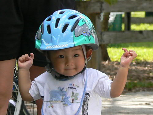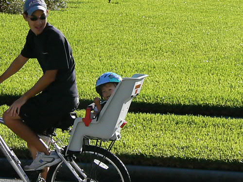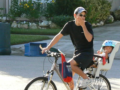 をマミーにして、ダディの自転車で"ブンブン"とデイケアへお出掛けです。