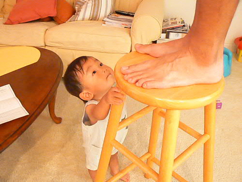 ダディが何かしてるとこうやってお手伝い。 "ダディ、ボクがしっかり押さえてるからね!!"って感じに見えますが、実はイスをガタガタやって遊んでました。