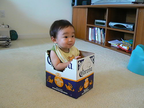 ダディのいたずらでビールの箱に入れられてしまいました。