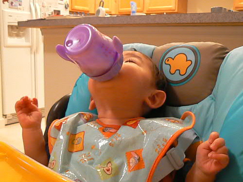 食事中にふざけてはいけません、って怒るべきなのか、一緒に笑うべきなのかちょっと迷ってます。