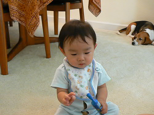 たまには自分でもって磨いたりもしてます。(ピカが後ろであきれてます