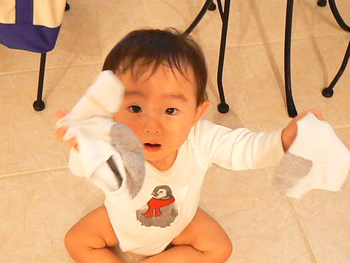 今日、カイちゃんをデイケアにお迎えに行ったところ、先生が"カイの写真を撮ったら、フィルムがもう無くなっちゃったみたいだよ"って言われたので、マミーは早速WalgreensでCDにおとしてきました。 私がカイちゃんのデイケアを探している時に見学をした際に、カイのクラスをコーディネイトしている先生から、"使い捨てカメラを持ってきてください"って言われていたので、マミーはちゃ~んと初日にカイの引き出しにカメラを入れてきました。 5ヶ月でデイケアへ通い始めたカイちゃん。 ルーム100から150へ移り、最近200へ昇格 部屋が変わるたびに、ちょっと同様ぎみだったけど、なんとか一所懸命やってくれてます。 そのカメラには、部屋を動くたびに成長しているカイちゃんが写ってました。 まずはルーム100の写真: これは本当に入ったばっかりの時の写真でカイちゃんは約五ヶ月。 なんか今よりもぽっちゃりで、すっごく赤ちゃんぽいよね~。 (でも、この服、今も着れるぞ。。。何でだ???)
