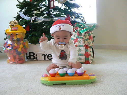 他の方から頂いたプレゼントもツリーの前であけてあげるととっても喜んでいきなり遊び始めました。 何にでも興味を持つようになってきて、こうやって見てると親としては無事に成長してくれて本当に嬉しいです。