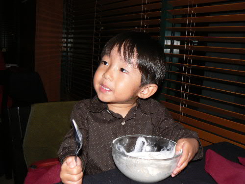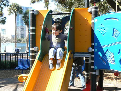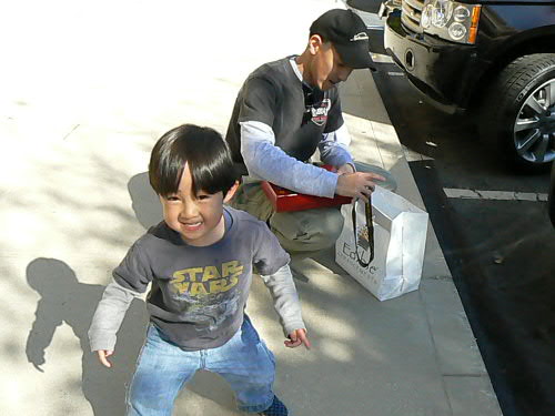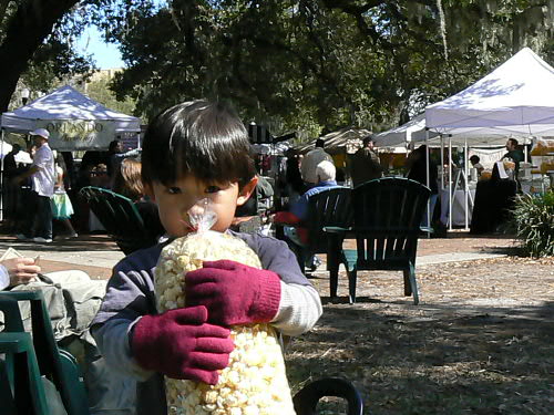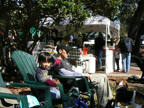 そのレストランの外でちょっとしたコンサートをやってました。って言っても、じいちゃんが歌ってじいちゃんばあちゃんがダンスしてるという、何のエキサイトメントもないコンサート。 ところが大道芸人好きのカイトは大喜び! じいちゃんばあちゃんが踊るのを見て自分はちょっとロックっぽいのりの踊り(ぜんぜんあってない)をしてました。 Jimmy Buffetみたいな歌で。 通りすがりの方達、皆に笑われてましたが。