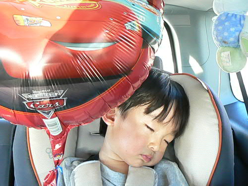 ビーチを出て車に乗ったとたん、本当に30秒で大いびきをかいて寝てしまったカイトは幸せ者です。
