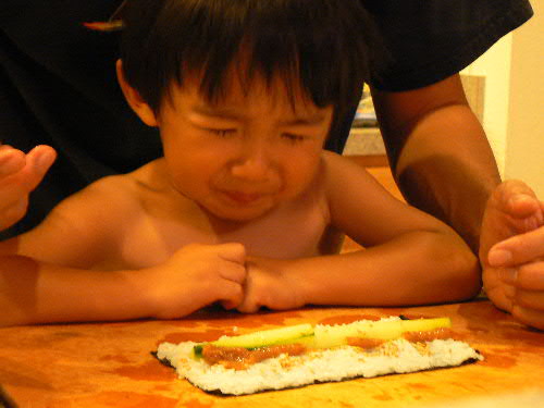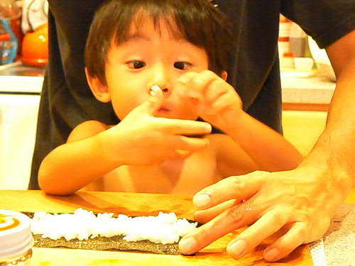 寿司を巻いていたら、ボクも巻くと言い出したカイト。
