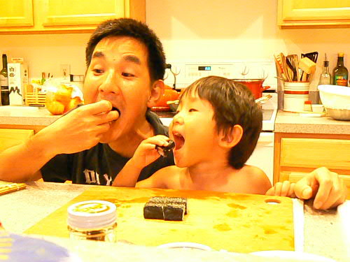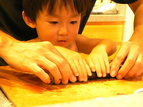 カイトとダディの合作、梅きゅう巻きの出来上がり。