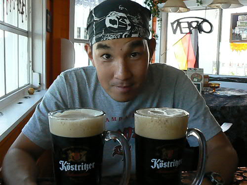 このビール”Kostrizer”というドイツの黒ビールで実はカイパパの大好きなビール。なかなかお目にかかれないだけあり、メニューに見つけたときは胸の高鳴りを感じた。ドイツの詩人”ゲーテ”がこよなく愛したビール、口当たりは黒ビールなのでマッタリした感があるが、コクがあって堪らない。夢はこのビールを本場ドイツで飲むことだ。