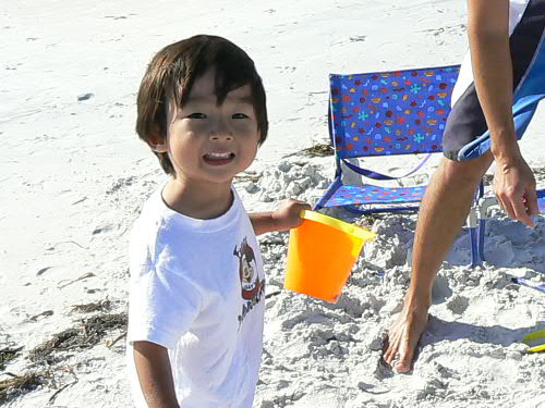 ランチ後はDeSotoParkのビーチへ。波に足をすくわれ溺れたカイトは、ミノムシのようにタオルに包まれた。砂遊びのトンネル作りで気を取り戻してくれた。